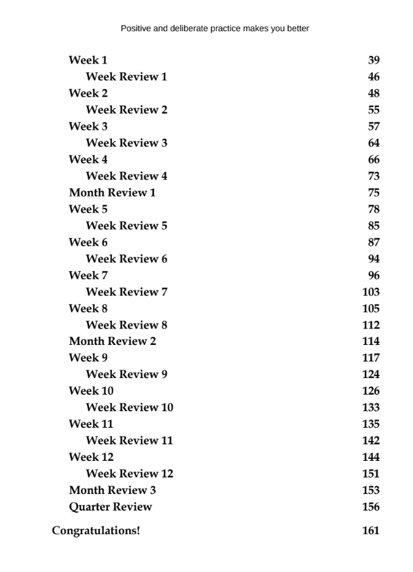• It includes weekly, monthly and quarterly reviews. (If you need more days you can always print them from the PDF).